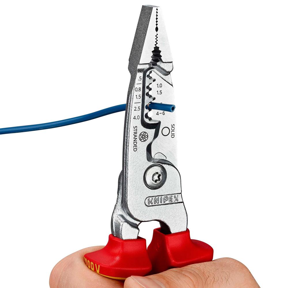 برش دادن کابل های گرد و تخت ، جدا کردن روکش سیم های مفتولی و رشته ای ، باز کردن ورودی سیم در قوطی های پریز ، نگهداشتن قطعات و خم کردن 5 عملکردی هستند که انبر برقکاری مدل 1376200ME کنیپکس برای شما انجام می دهد. این انبر یک ابزار متریک چند منظوره جمع و جور و بسیار خوش دست است که می تواند توسط متخصصان و تکنسین های صنایع برق و الکترونیک مورد استفاده قرار بگیرد. انتخاب این محصول شما را از داشتن چندین ابزار مختلف مانند انبردست ، سیم چین ، سیم لخت کن و ... بی نیاز می کند و موجب استفاده بهینه از زمان و فضا می شود. این مدل تنها 200 میلی متر طول و 290 گرم وزن داشته و در مقایسه با چند انبر مختلف ، فضای بسیار کمی را از جعبه ابزار شما اشغال می کند، همچنین در حین کار چون نیاز به تعویض مداوم ابزارها ندارید ، می توانید کار خود را سریع تر به پایان رسانید.