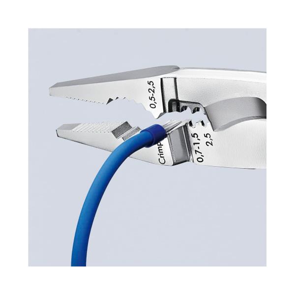 برش دادن کابل ، جدا کردن روکش سیم ، باز کردن ورودی سیم در قوطی های پریز ، پرس سرسیم ، نگهداشتن قطعات و خم کردن 6 عملکردی هستند که انبر برقکاری مدل 200 96 13 کنیپکس برای شما انجام می دهد. این انبر یک ابزار چند منظوره جمع و جور و بسیار خوش دست است که می تواند توسط متخصصان و تکنسین های صنایع برق و الکترونیک مورد استفاده قرار بگیرد. انتخاب این انبر شما را از داشتن چندین ابزار مختلف مانند انبردست ، سیم چین ، انبر پرس و ... بی نیاز می کند و موجب استفاده بهینه از زمان و فضا می شود. این مدل تنها 200 میلی متر طول و 280 گرم وزن داشته و در مقایسه با چند انبر مختلف ، فضای بسیار کمی را از جعبه ابزار شما اشغال می کند، همچنین در حین کار چون نیاز به تعویض مداوم ابزارها ندارید ، می توانید کار خود را سریع تر به پایان رسانید.