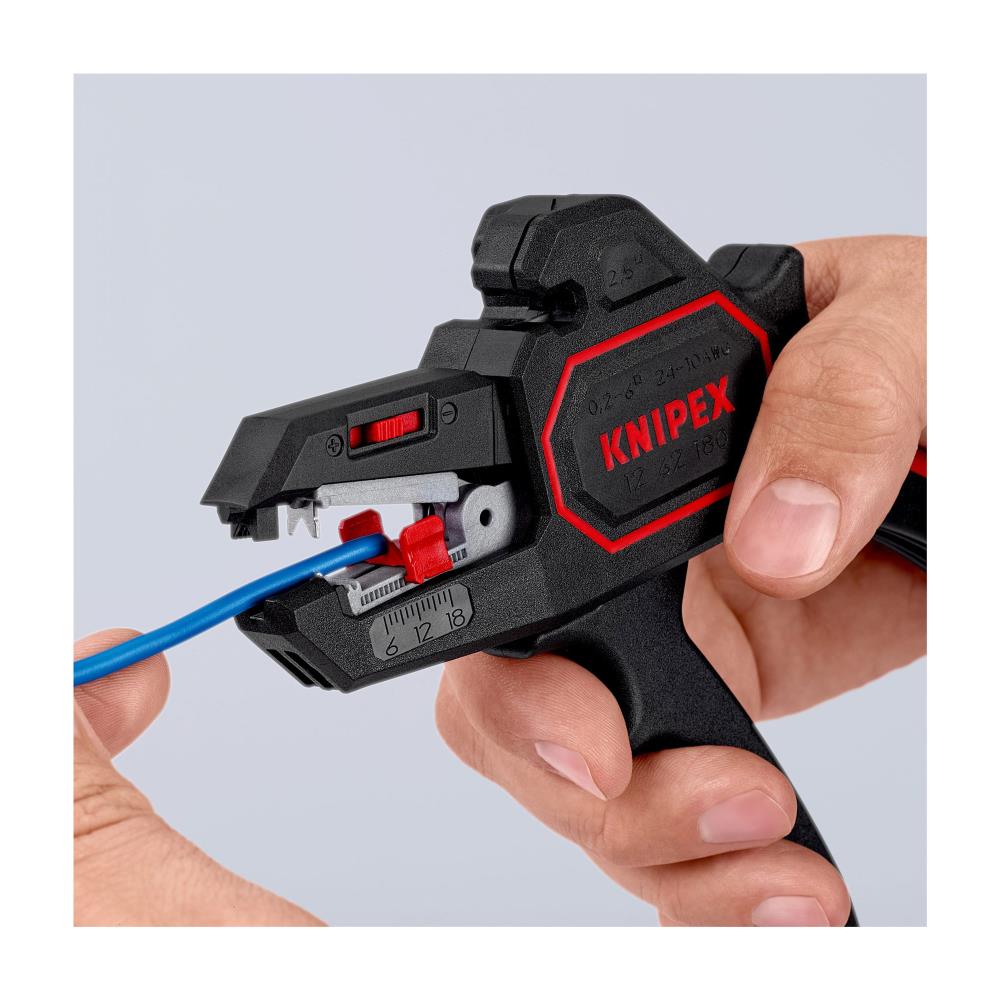 انجام یک سیم کشی صحیح و اصولی از نظر فنی در مرحله اول نیاز به ابزار حرفه ای و تخصصی دارد. یکی از ابزار های کاربردی در این زمینه سیم لخت کن اتوماتیک 180 62 12 کنیپکس است که می تواند روکش انواع سیم ها را بسیار سریع و ایمن برش داده و جدا نماید. تمامی مراحل کار با استفاده از این ابزار به صورت خودکار انجام شده و شما تنها کافیست تا سیم را به میزانی که از قبل تنظیم نموده اید، وارد کرده و سپس دسته را فشار دهید. انبر به صورت خودکار روکش را برش داده و سپس آن را از روی سیم جدا می کند. در قسمت بالای ابزار نیز یک کاتر قرار گرفته است که می تواند برای قطع کردن سیم ها تا سایز 2.5 میلی متر مربع از آن استفاده شود.