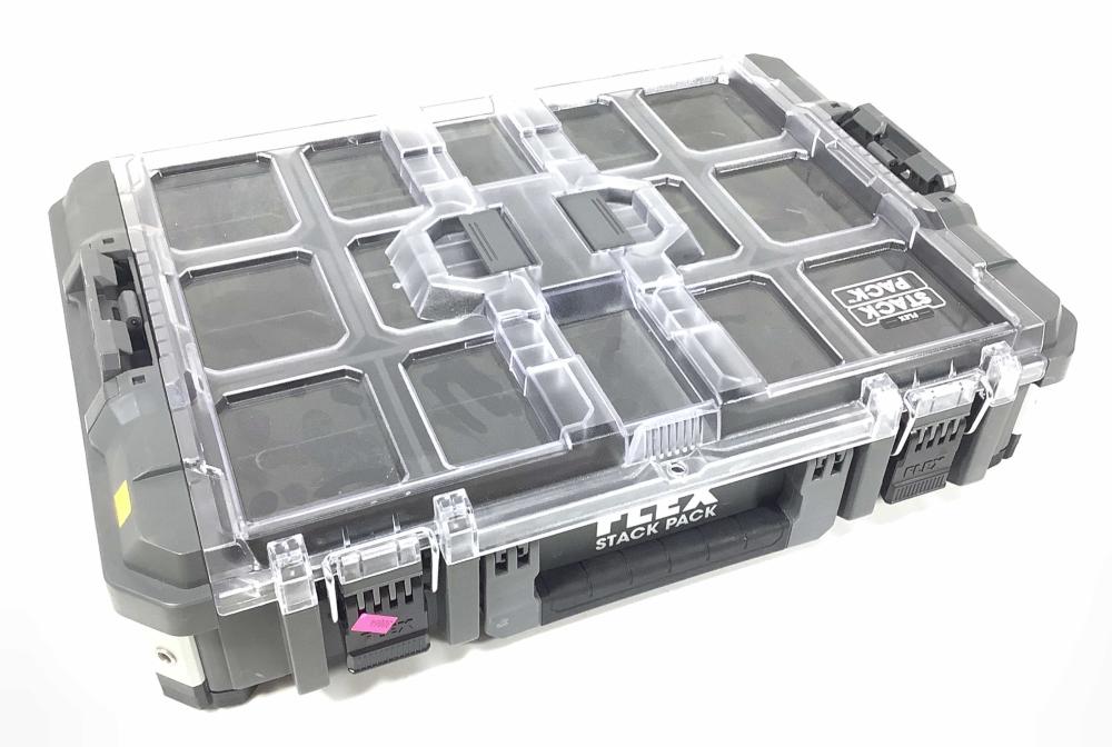 جعبه ابزار اورگنایزر سایز بزرگ فلکس با قابلیت اضافه کردن اورگنایزر های کوچک و سایر ابزار های استاندارد به بدنه با استاندارد IP65 با تحمل وزن 22 کیلوگرم.