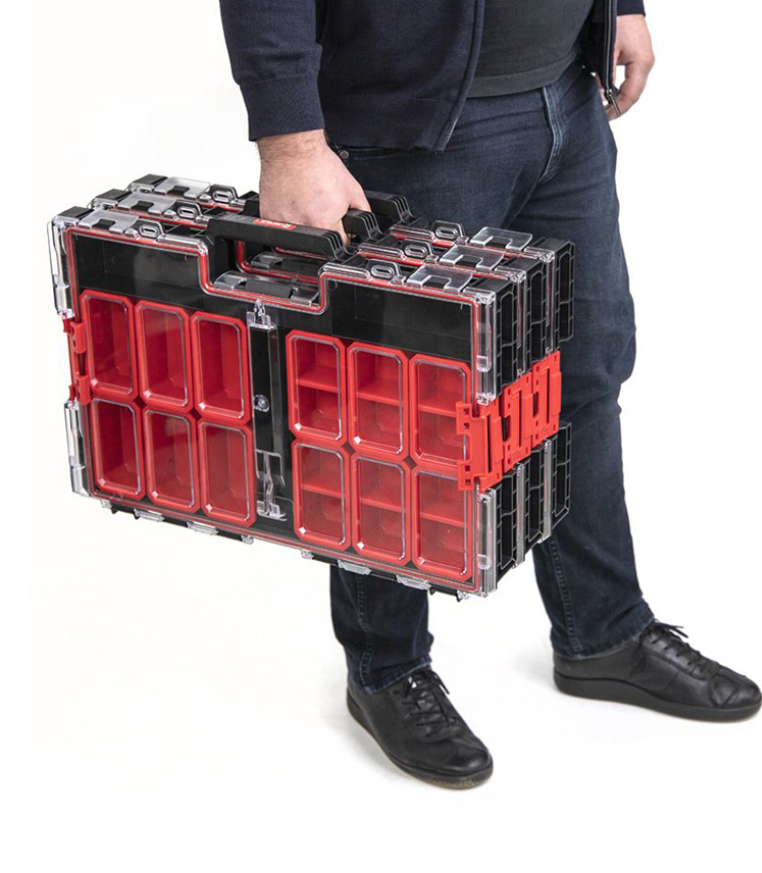 لاکرها و قفل های کناری این جعبه پیچ و مهره امکان اتصال این جعبه به دیگر جعبه ابزارها و جعبه های پیچ و مهره از این برند معتبر جهانی را به حرفه ای های صنعت می دهد. امکان اتصال جعبه ابزارهای مختلف به یکدیگر یکی از خاص ترین امکانات ویژه جعبه ابزارهای حرفه ای کیوبریک است که امکان شخصی سازی و استفاده همزمان از ویژگیهای چندین جعبه ابزار را در کنار یکدیگر به صنعتگران حرفه ای در تمام دنیا می دهد.