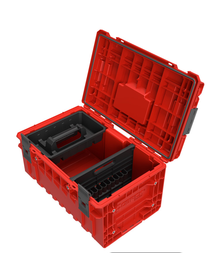 QBRICK SYSTEM RED ONE 350 VARIO یک جعبه ابزار بزرگ با ظرفیت 38 لیتر است. در این جعبه ابزار تعداد زیادی ابزارهای برقی و دستی جای میگیرد. دو تقسیم کننده فضای قابل تنظیم به نظم داخل جعبهابزار کمک میکنند. هر جعبه ابزار با مهر و موم انعطاف پذیر مجهز شده است ، که محافظت کاملی در برابر گرد و غبار و آب دارد.