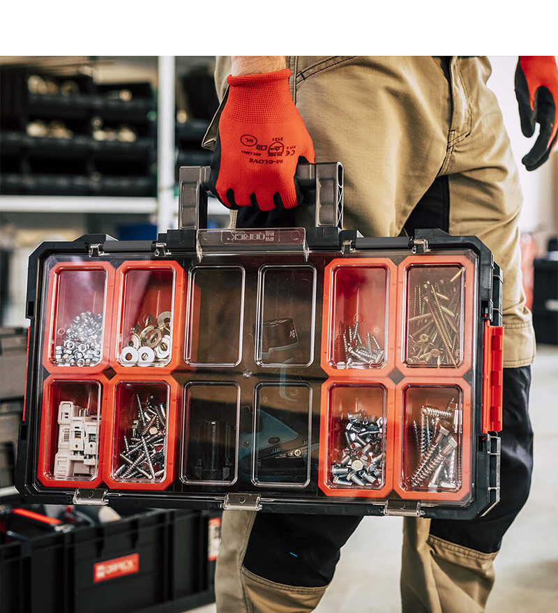 جعبه ابزار organizer two دارای یک طراحی ارگونومیک است که حمل و نقل آن را آسان می کند. دستگیره جعبه ابزار نرم و راحت است و به راحتی در دست قرار می گیرد.