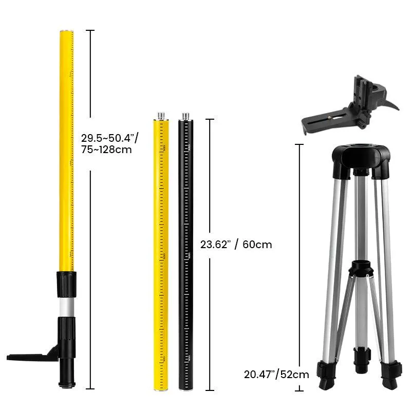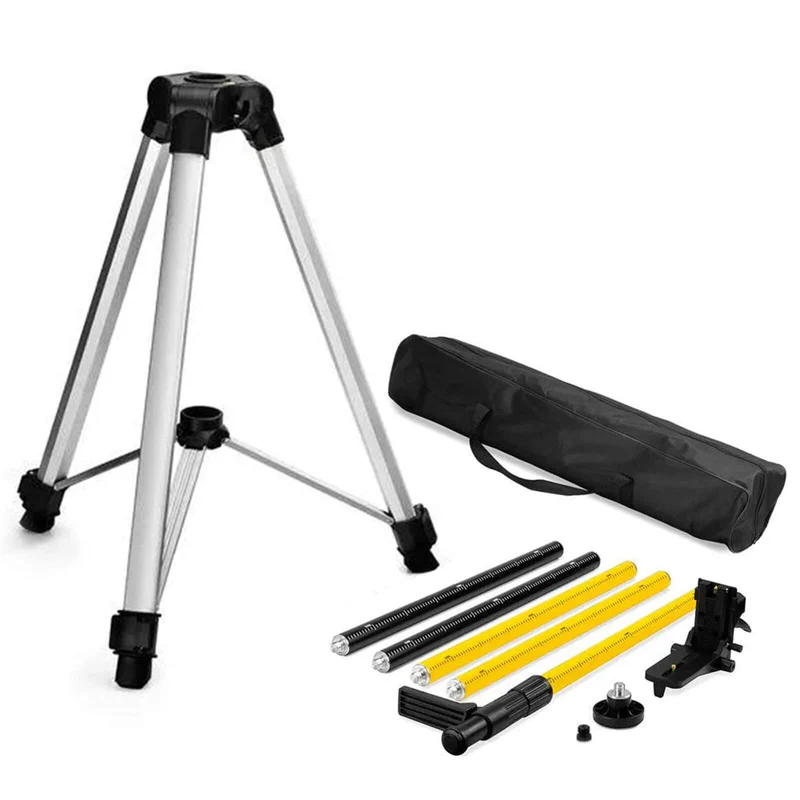کیت سه پایه لیزر سیگمن CM-100P همراه با میلۀ تلسکوپی، یک مجموعه کامل برای کار در ارتفاعات مختلف ارائه میدهد. این کیت به ویژه برای افرادی که در آپارتمانها و خانههای با سقف استاندارد کار میکنند، مناسب است. سه پایه این کیت دارای قابلیت تنظیم ارتفاع و یک تراز حبابی برای دقت بیشتر است.