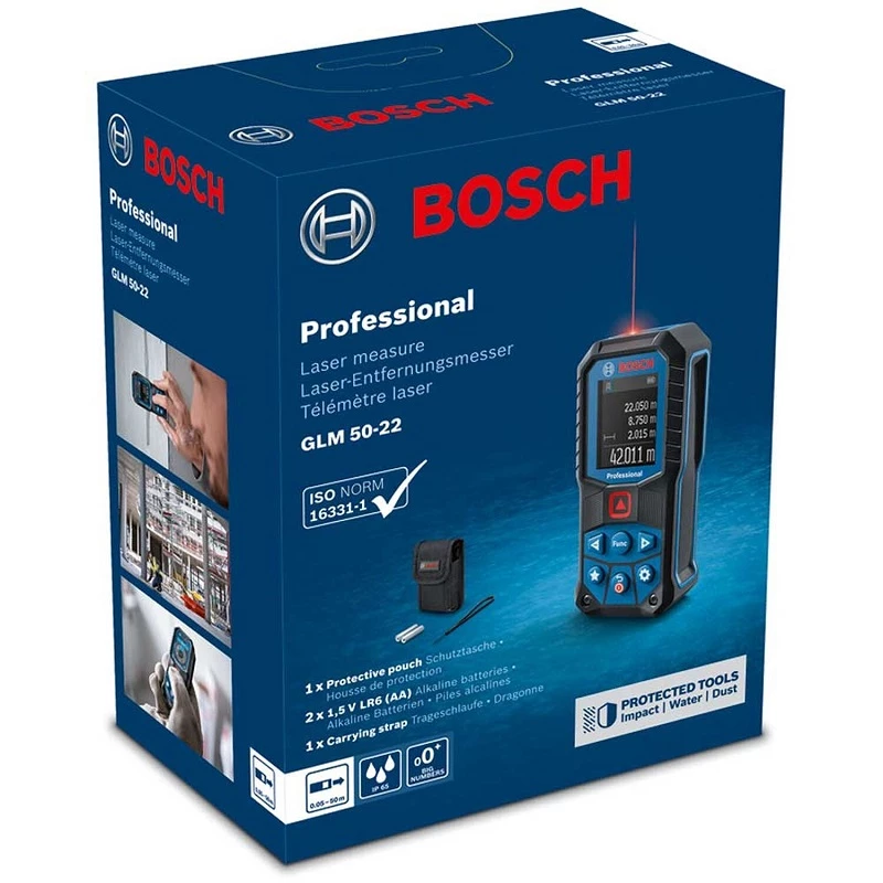 متر لیزری بوش مدل GLM 50-22 با قابلیت اندازه گیری تا برد 50 متر و اندازه گیری های غیرمستقیم برای یکی از وسایل دقیق و کاربردی برای اهالی فن میباشد.
