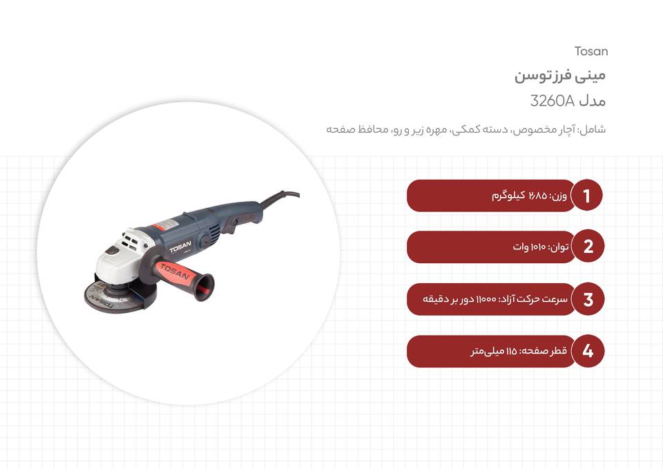 مینی فرز آهنگری 115 میلی متری A3260 از دیگر محصولات شرکت توسن می باشد.این فرز دارای ابعاد کوچکی است،که بخاطر همین ابعاد شما می توانید در هر مکانی که دسترسی به آن سخت است،از این فرز استفاده کنید.