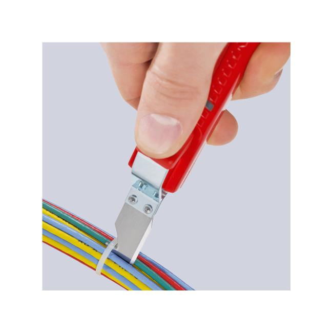 کاتر روکش کابل مدل 1620165SB کنیپکس یک ابزار حرفه ای برای برش روکش انواع کابل از سایز 8.0 تا 28.0 میلی متر است. برای برش روکش کابل می بایست آن را در زیر اهرم نگهدارنده قرار داد و سپس با چرخاندن کاتر اقدام به برش دایره ای روکش کرد. همچنین می توان از این تیغه برای ایجاد برش در طول کابل نیز استفاده نمود. می توان از پیچ تنظیم قرار گرفته در انتهای کاتر برای تنظیم دقیق عمق برش استفاده کرد.